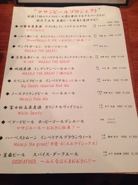 すると出てきたマサジビールメニュー。どーん。