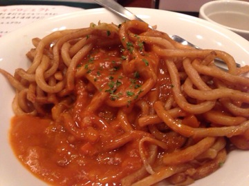 太麺の焼きそばにミートソースをかけたもの。フードはこれでかなり満足できた。