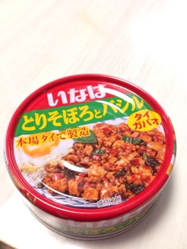 いなばの「タイ缶詰シリーズ」には実はもうひとつ、「とりそぼろとバジル(タイガパオ)」がある。