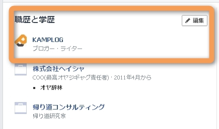Facebookの「職歴と学歴」のところは、今働いている会社名は特に載せずに「帰り道研究家」なんてことにしていた(最近研究不足)のだが、ブロガーでもあることだし、それを職歴として載せることにした。