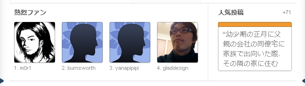 一番リアクション数が多かった投稿が熱烈ファンランキングの横に表示されている。