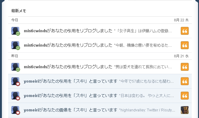 リアクション(NOTES)とは、あなたがTumblrに投稿したポストに対しての
