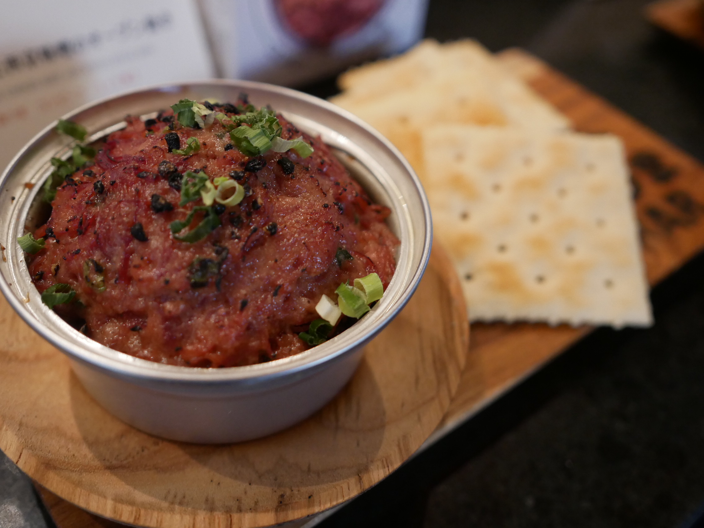 で、その日本酒ハイボールに合わせるのがおススメとあったので最初の缶つまフードは「缶つま コンビーフ ユッケ風」に西京味噌を加えて焼いたこの一品を。