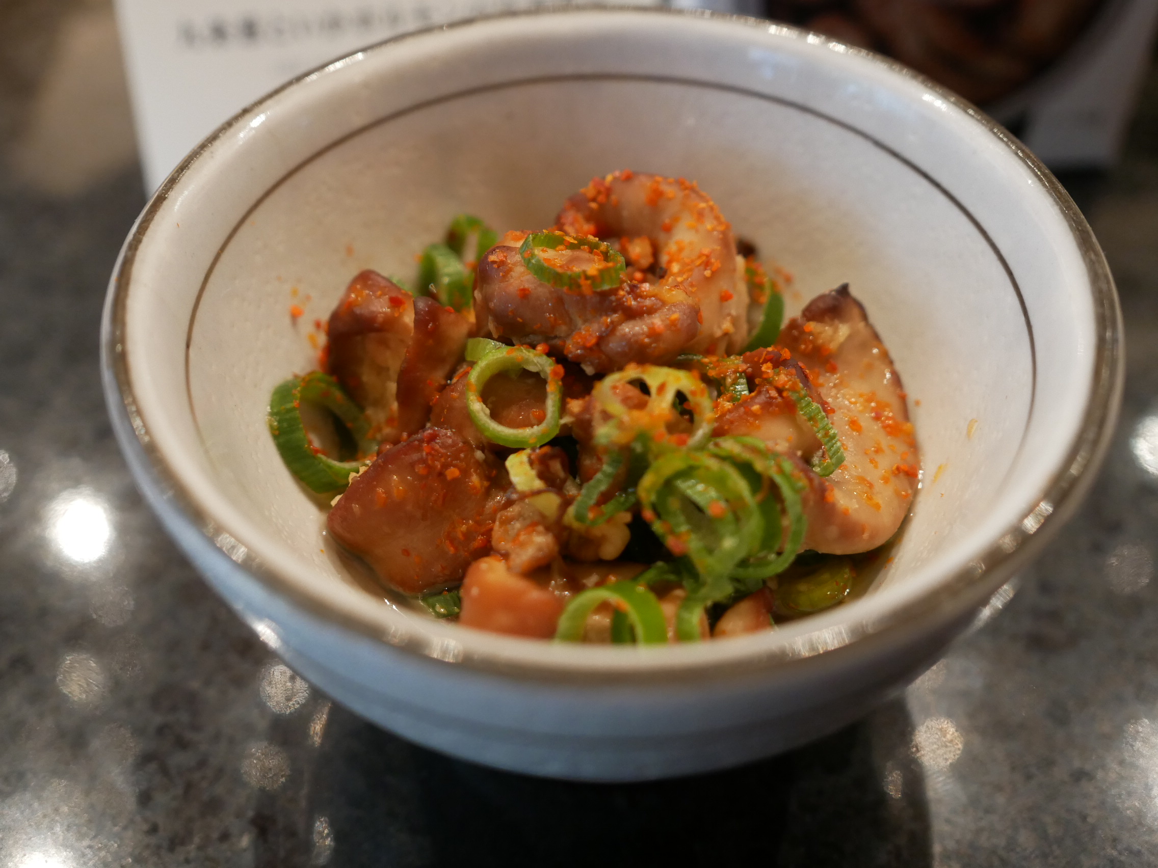 ▲九条ねぎといかホルモンの生姜和え(600円)