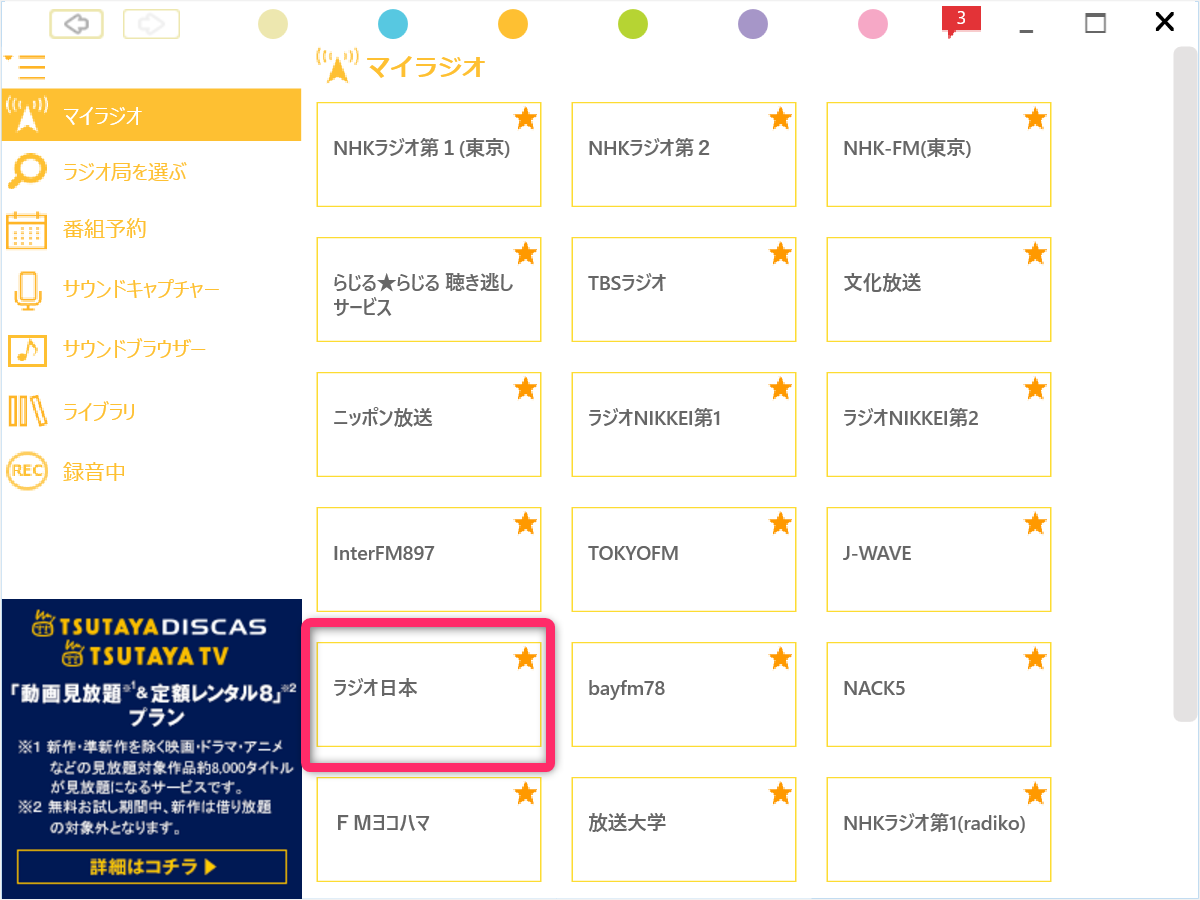 「ラジオ」をクリック。