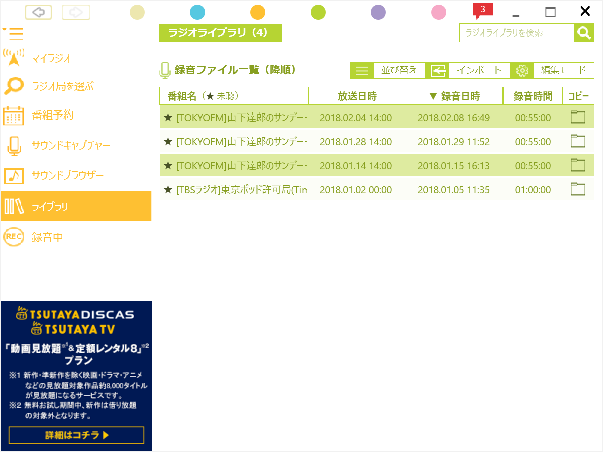 私もいくつかお気に入りのラジオ番組があって毎週聴いているのですが、聴き逃したり、ネットにつながらない状況でも聴きたい時があったりします。